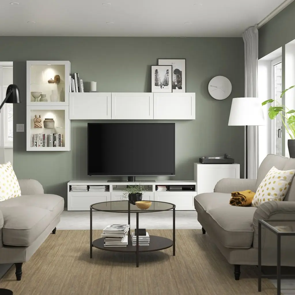 Благодаря нескольким отверстиям на задней панели тумбы под ТВ провода от телевизора и других устройств всегда будут под рукой, но не на виду.Специальное отверстие в верхней панели обеспечит удобное и компактное размещение проводов.Благодаря доводчикам ящики закрываются плавно и бесшумно.Ящики обеспечат более упорядоченное хранение ваших вещей. А полки за дверцами предоставят еще больше места.Съемные полки позволяют регулировать пространство.Настенные шкафчики позволяют эффективно использовать пространство над телевизором.Организуйте и оптимизируйте систему для хранения БЕСТО, используя подходящие коробки и вставки.Если вы выберете функцию плавного закрывания, рекомендуем дополнить фасады ручками, чтобы открывать ящики/шкафы было удобнее.Конструкция дверей/фронтальных панелей ящиков ХАНВИКЕН позволяет крепить ручки только на их внешней раме, а не в центре.Максимальная нагрузка на закрепленный на стене каркас зависит от материала стены.Эту мебель необходимо крепить к стене с помощью прилагаемого стенного крепежа.Будьте осторожны при обращении с закаленным стеклом! Из-за поврежденных краев и царапин на поверхности стекло может внезапно разбиться.
