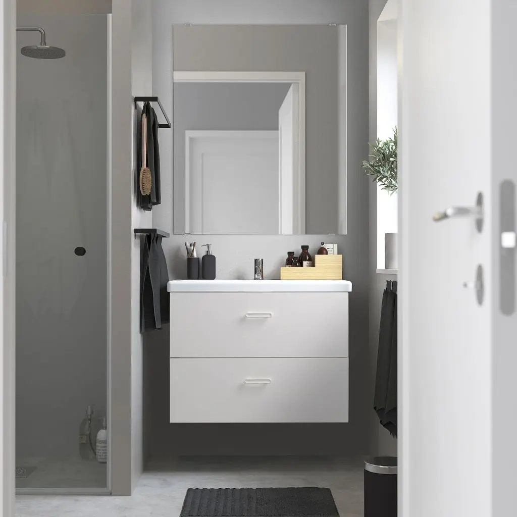 Этот напольный шкаф шириной 80 см обеспечит вашим вещам место, которого они заслуживают.Вещи, которые используются часто — ватные диски, щетки и средства гигиены, удобно хранить в верхнем ящике, а для полотенец используйте нижний ящик.Плоские зеркала делают ванную комнату более просторной. Специальная пленка защитит стекло от повреждений и сделает зеркало более безопасным.Интегрированный в смеситель аэратор поддерживает оптимальный напор, при этом используется меньше воды и энергии.Раковина устойчива к воздействию большинства химикатов, за исключением сильных кислот и щелочей.При возникновении вопросов по установке обратитесь к специалисту. Установку необходимо осуществлять в соответствии с местными строительными и сантехническими нормативами.Ручки продаются отдельно.