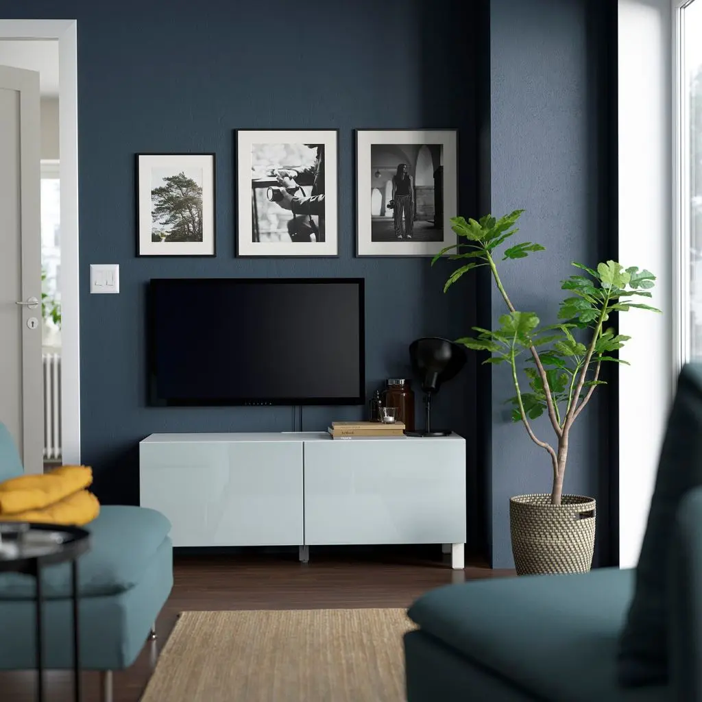 Благодаря нескольким отверстиям на задней панели тумбы под ТВ провода от телевизора и других устройств всегда будут под рукой, но не на виду.Дверцы открываются легким нажатием и закрываются плавно и бесшумно благодаря петлям с нажимным механизмом и функции плавного закрывания.Съемные полки позволяют регулировать пространство.Организуйте и оптимизируйте систему для хранения БЕСТО, используя подходящие коробки и вставки.Тумбу под ТВ необходимо крепить к стене с помощью прилагающегося стенного крепежа.Если вы выберете функцию плавного закрывания, рекомендуем дополнить фасады ручками, чтобы открывать ящики/шкафы было удобнее.2 регулируемые по высоте полки прилагаются.Чтобы создать единый интерьер во всем доме, фасады СЕЛЬСВИКЕН можно комбинировать с подходящими дверями ФАРДАЛЬ для гардероба ПАКС.