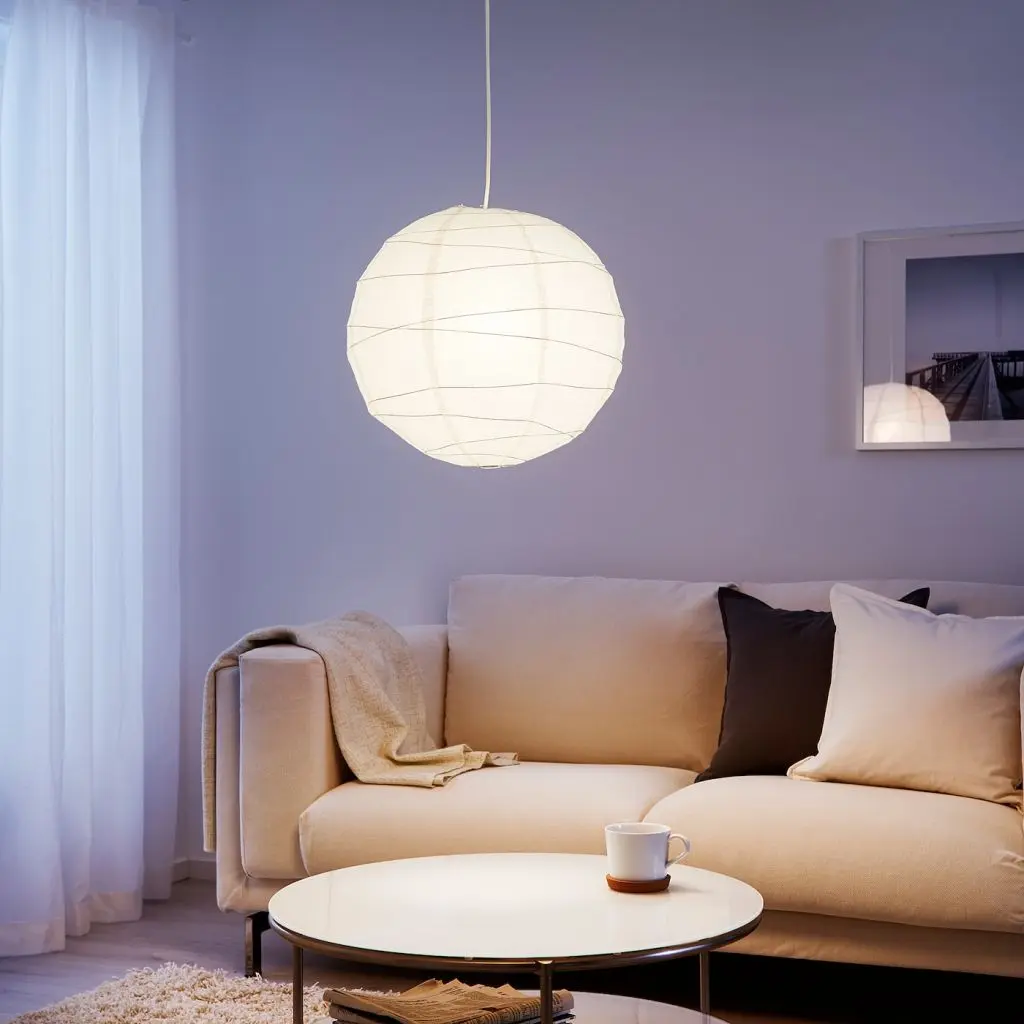 Каждый абажур, сделанный вручную, уникален.Мягкий рассеянный свет, проходящий через бумажный абажур этого светильника создаст в вашем доме уютную и располагающую атмосферу.Лампочка продается отдельно. Мы рекомендуем шарообразный молочный светодиод E27.Постоянное подключение к электросети.Можно подвесить на потолочный крючок.В целях безопасности подвешивайте в недоступном для детей месте.