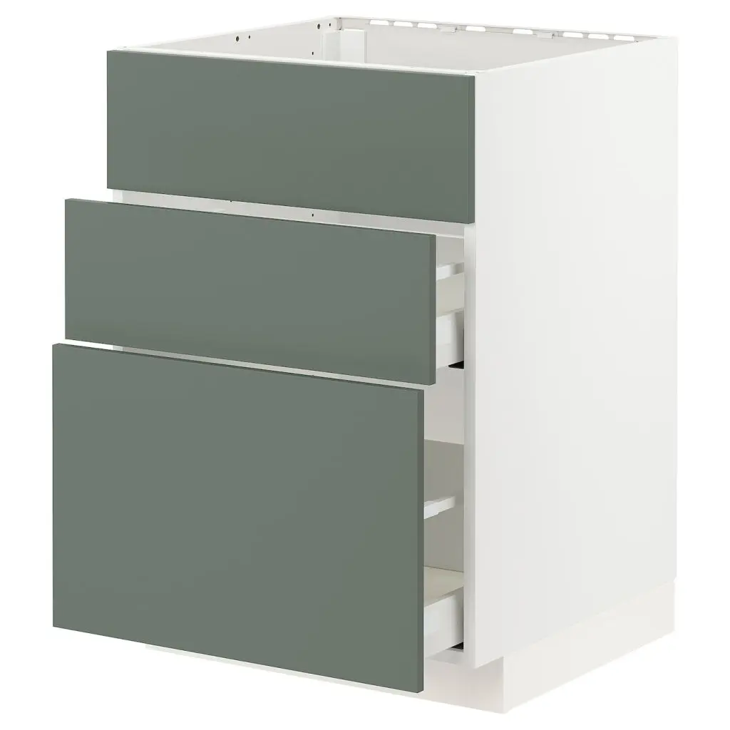 Напольн шк п-мойку+3фрнт пнл/2ящ, белый, Бодарп серо-зеленыйНожка, 60x60 см8 см